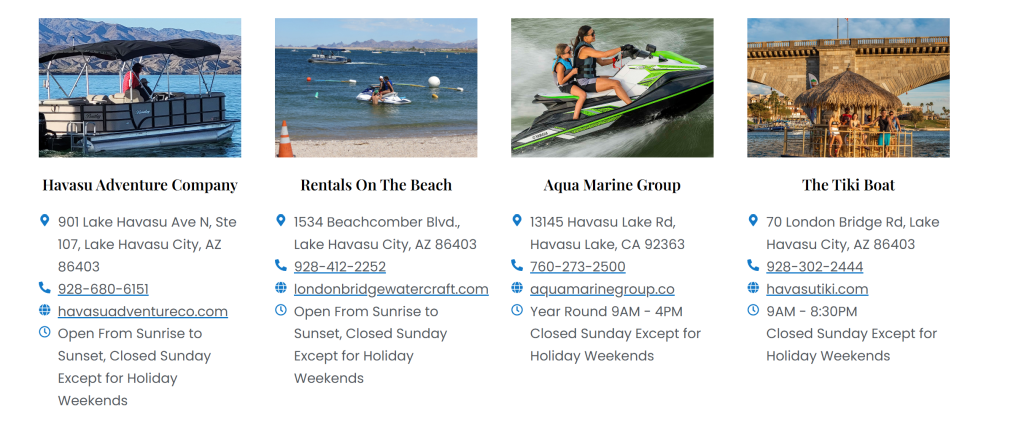 We have many options for you to experience Lake Havasu. We have local knowledge that will help you have a great time.